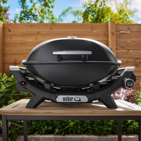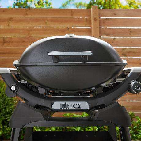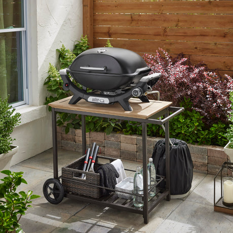 Barbacoa Weber Q 2200N con mesas laterales y soporte compacto