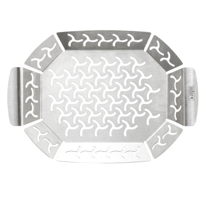Esta cesta para verduras de Weber está hecha 100% de acero inoxidable, y por su tamaño, es ideal para barbacoas de formato pequeño, como las barbacoas de la serie Weber Q1000/Q1200/Q2400, o la PULSE 1000, por ejemplo.