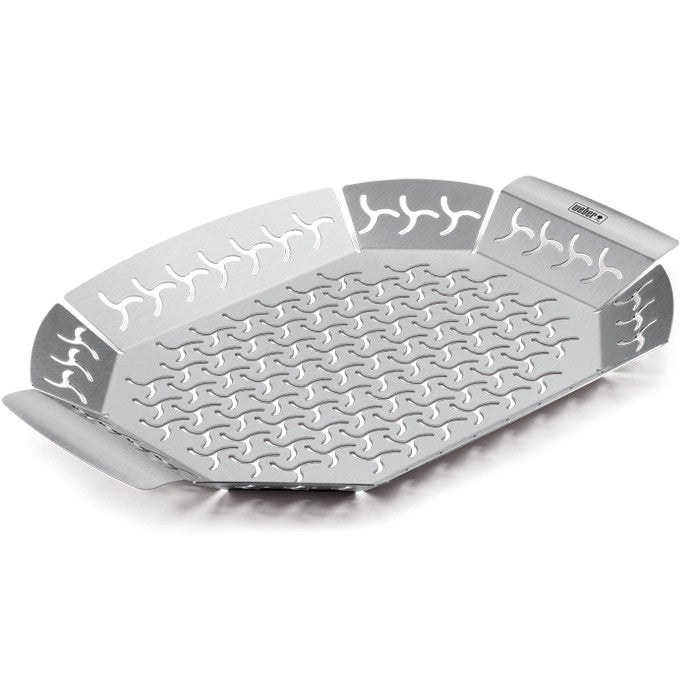 Esta cesta para hortalizas, hecha 100% de acero inoxidable, tiene los laterales elevados para poder mezclar los alimentos sin que se caigan. Los agujeros de la superfície, a su vez, permiten que el humo de la barbacoa penetre en los alimentos, infundiéndolos de aroma y sabor a parrilla.
